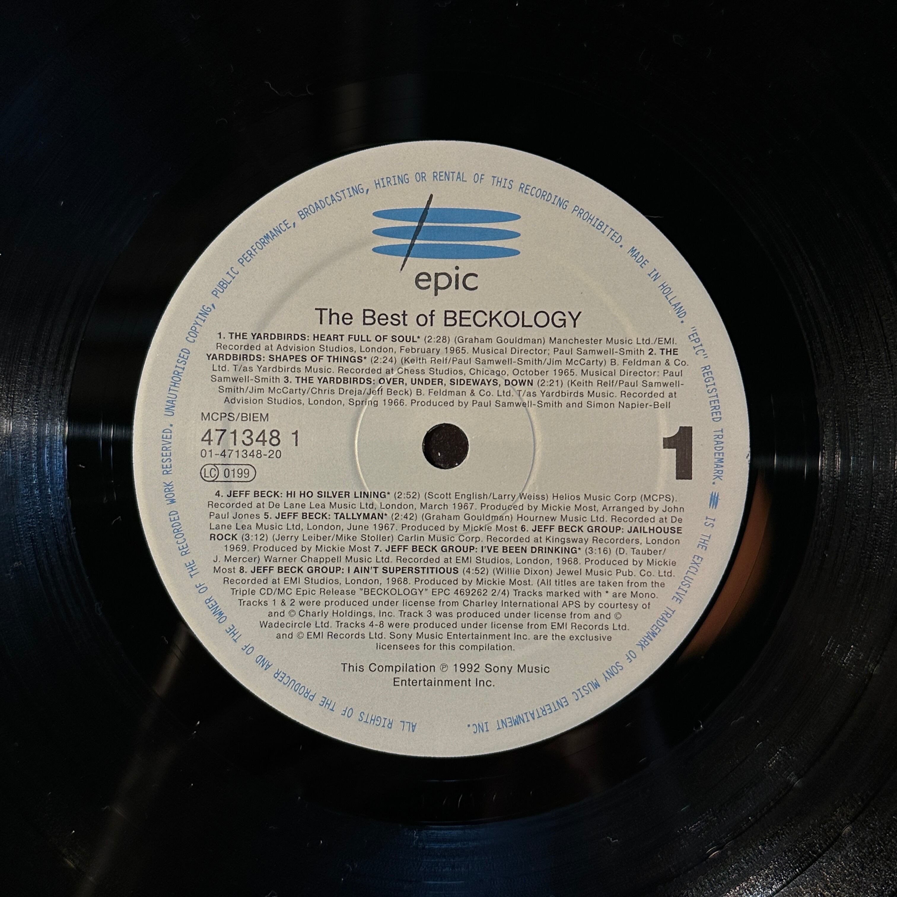 ジェフ・ベック、90年代のベスト。UKオリジナル、テクスチャード・ジャケット、オリジナル・インナーバッグ付。