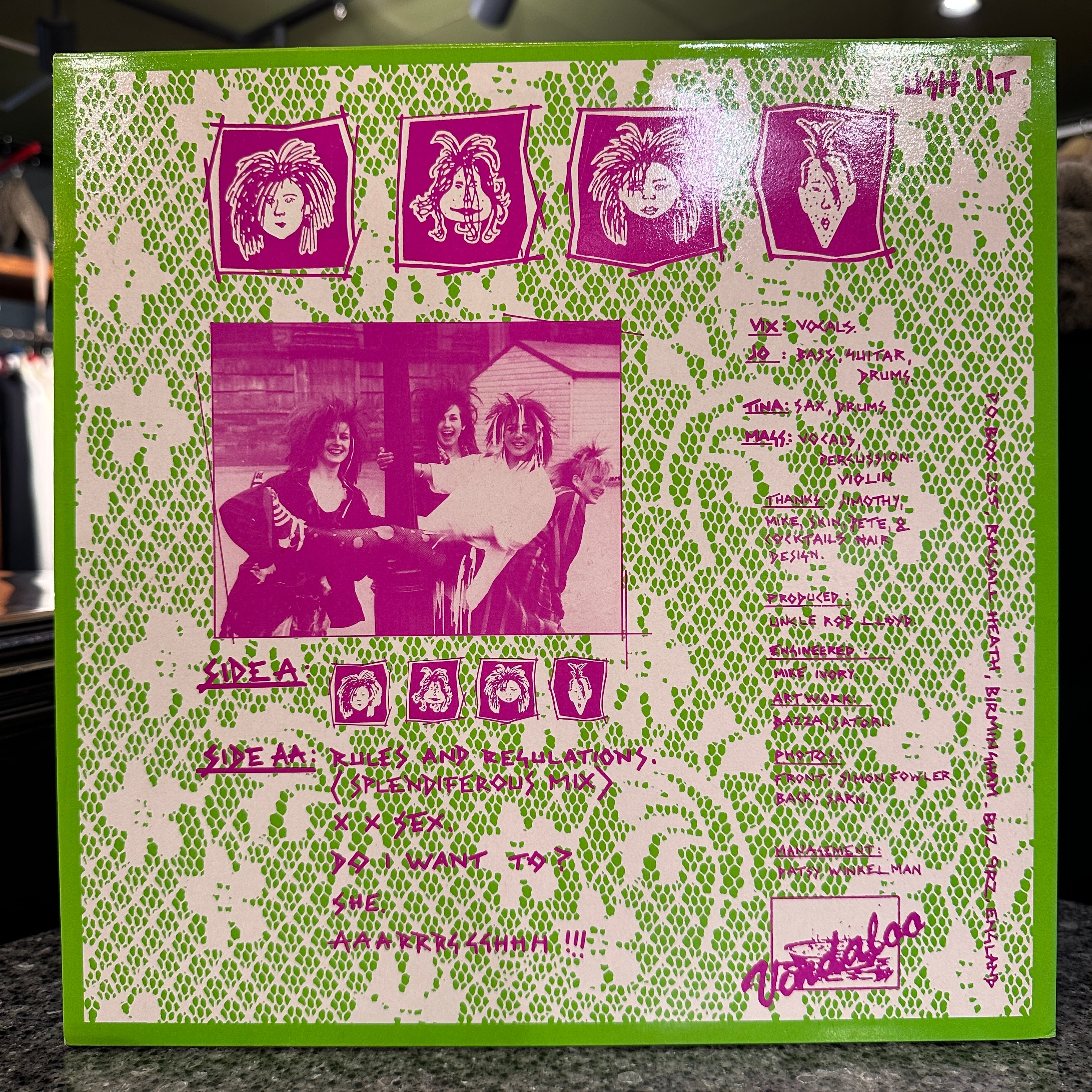 バーミンガム出身のガールズパンクバンド。1stアルバムからのシングルカット、45回転12インチ。A面はメンバーのエッチングのみでB面のみ収録のユニークな一枚。