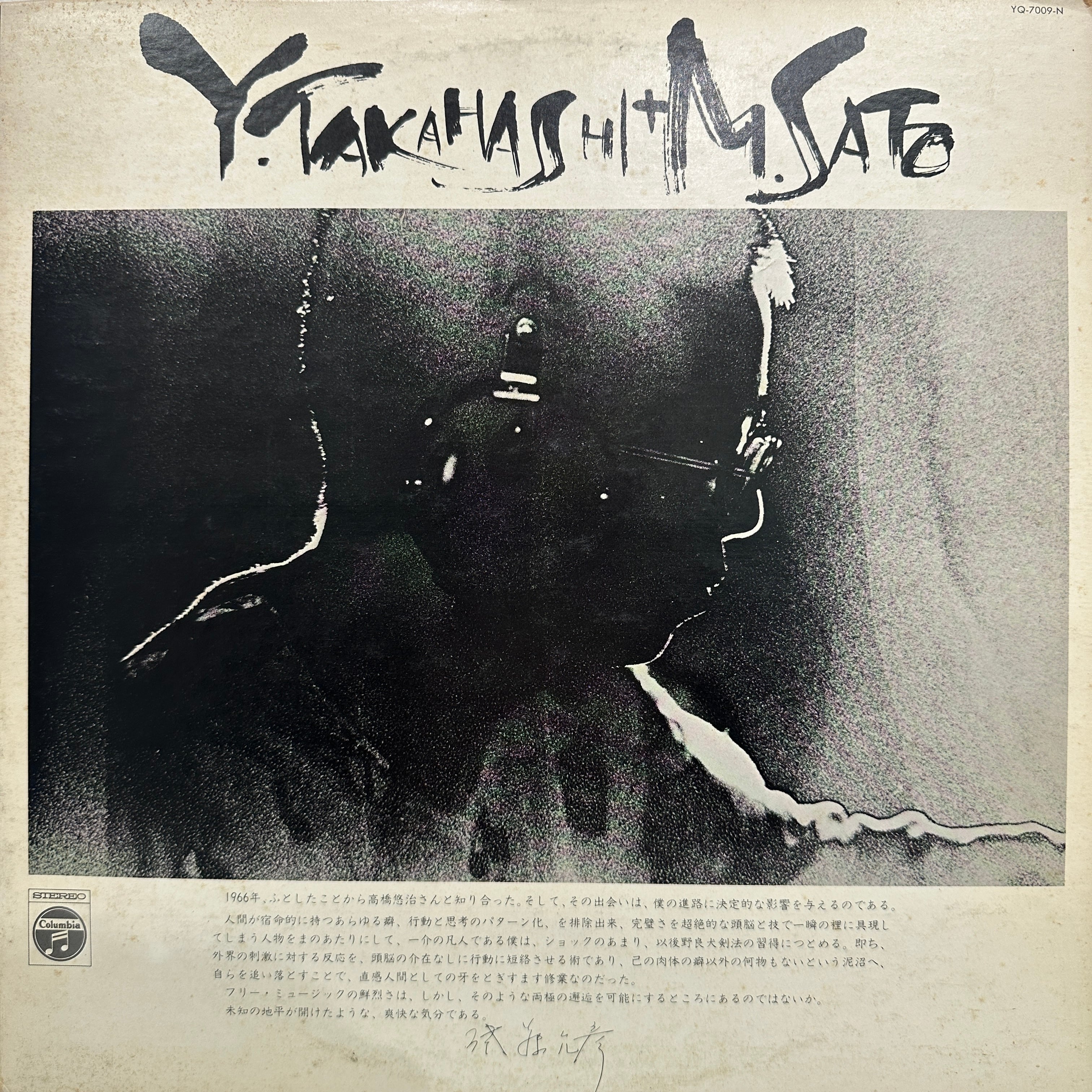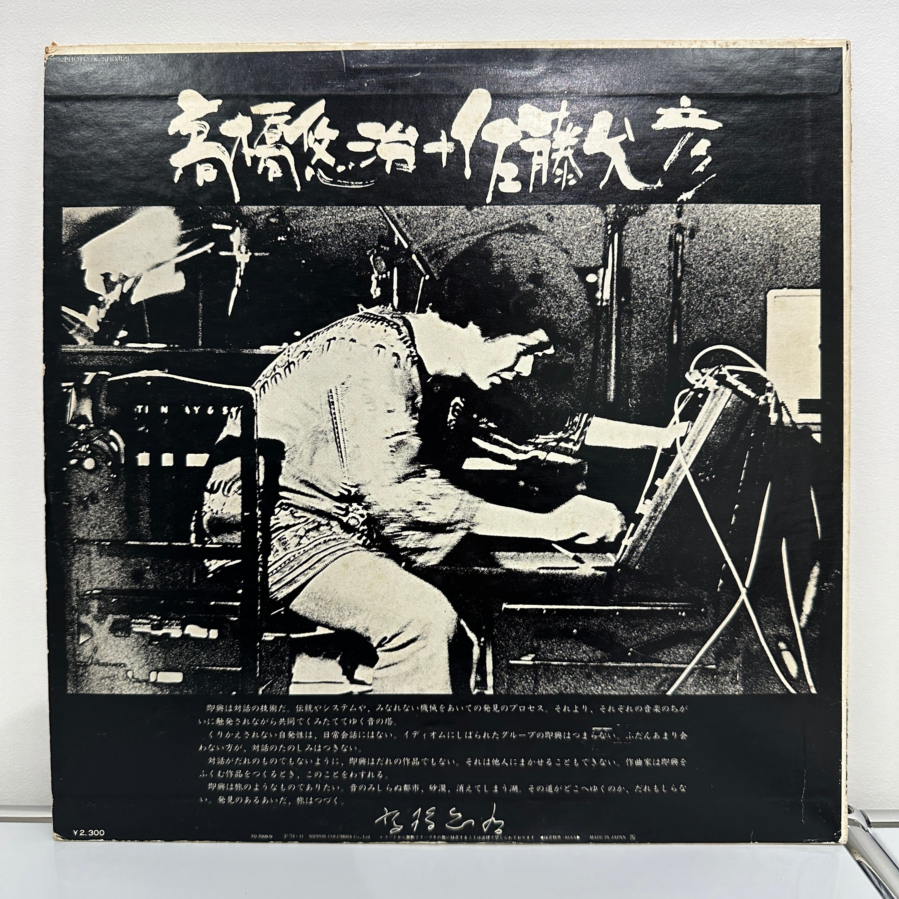 佐藤允彦と高橋悠治によるフリーインプロビゼーション。国内盤オリジナル。帯欠。ジャケは少しシミあります。