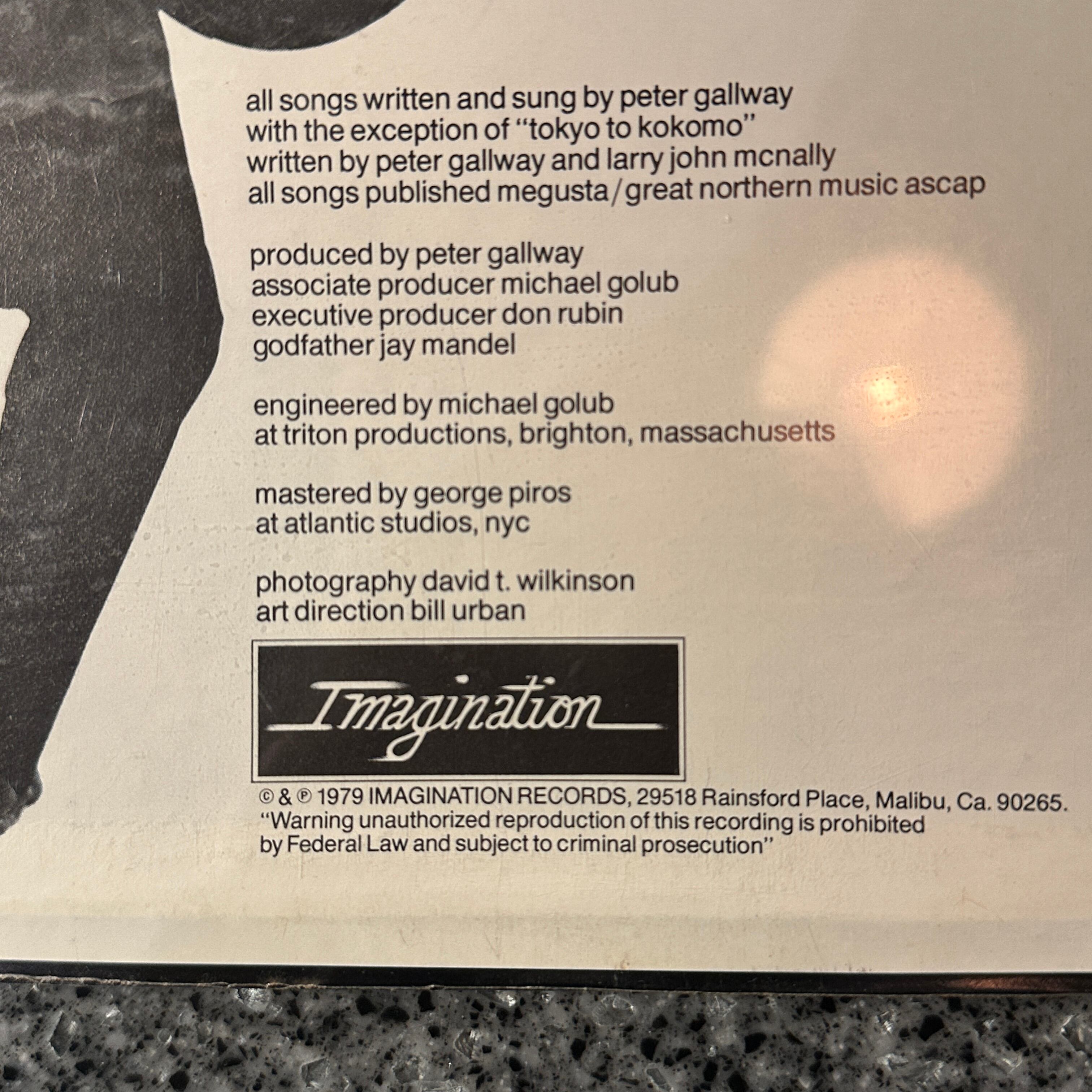 元Fifth Avenue Bandのピーター・ゴールウェイによるソロ作。USオリジナル盤。ジャケット、シュリンクラップに入っていますが下部に折れシワとラップの破れ有。シールドコンディション。