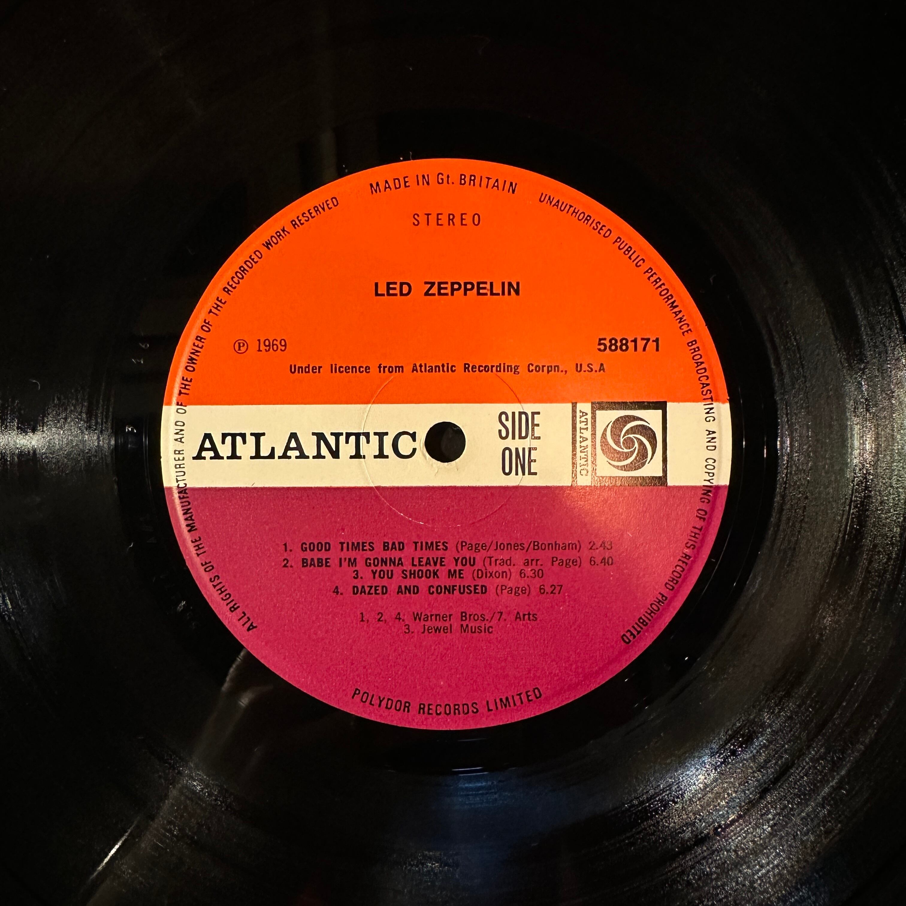 UKオリジナル、赤/紫レーベル、マト1/4、Jewel Musicクレジット、コーティング・ジャケット。裏ジャケにK40031のシール。