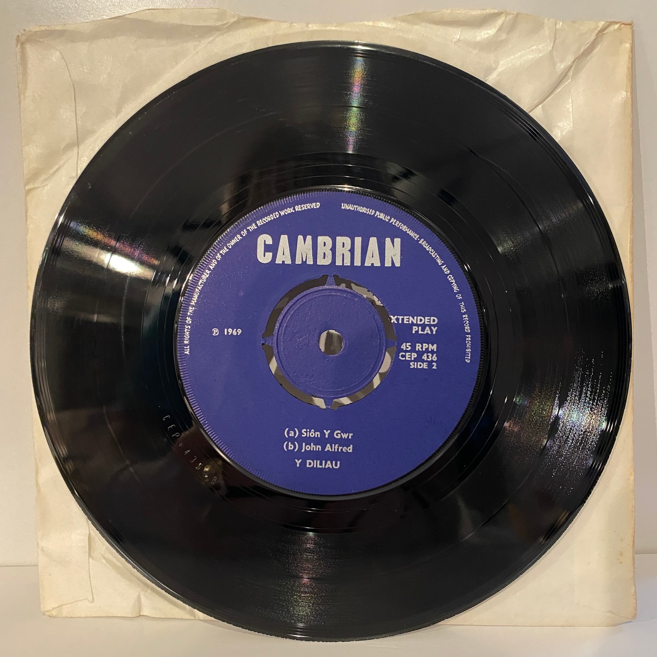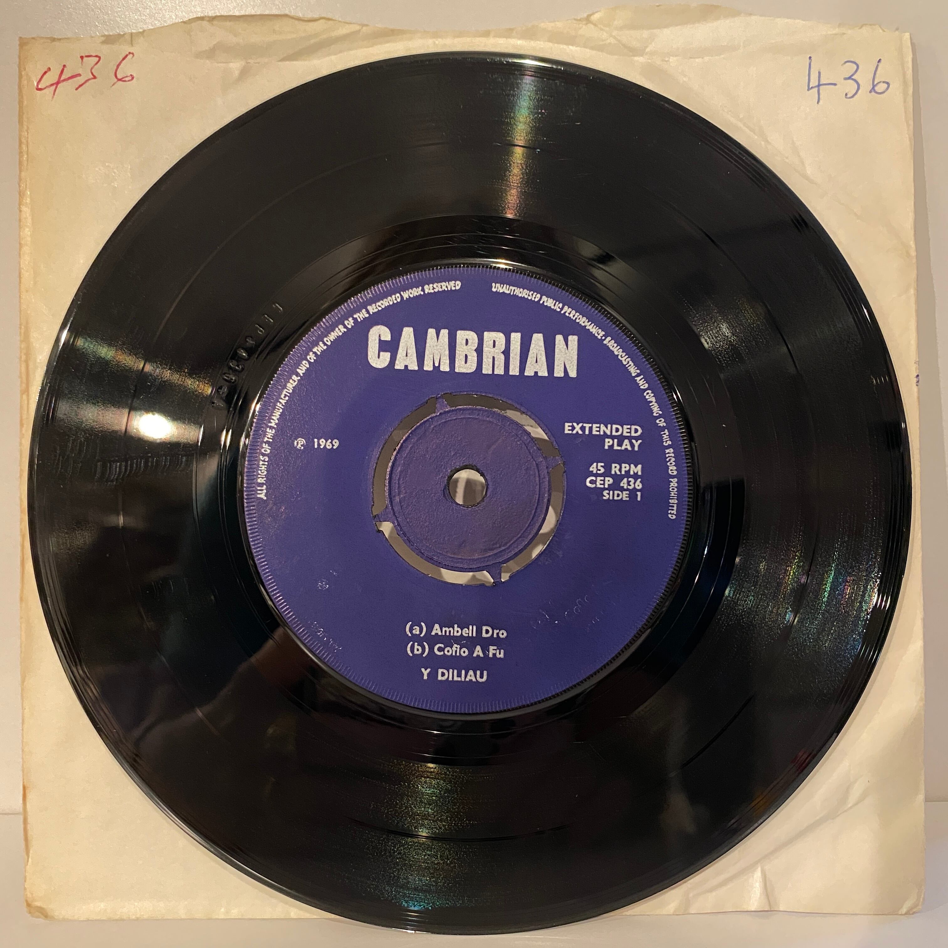 ウェールズ・オリジナル、4曲入りEP、プッシュ・アウト、コーティングでフリップバックのPS付。裏ジャケに小さな薄い書込みあります。