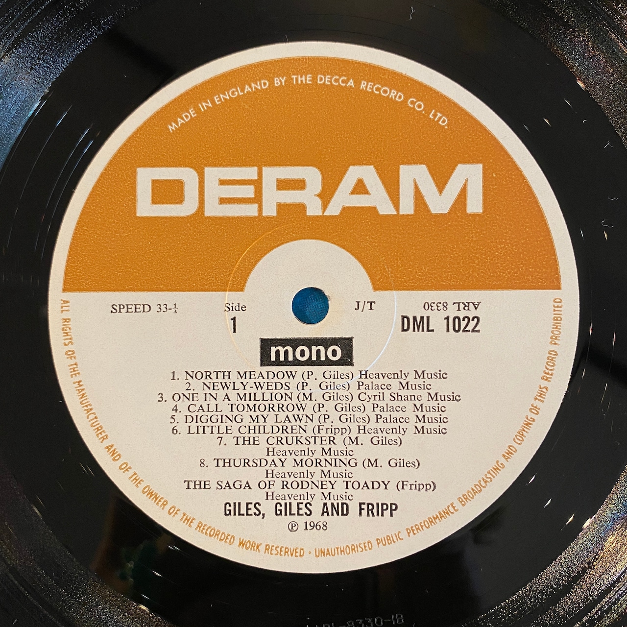ジャイルズ兄弟とロバート・フリップによるクリムゾン前の伝説のアルバム。この時期にここまでプログレッシヴな内容となっていることに驚かされます。激レアUKオリジナル、モノラル・プレス、コーティング・ジャケット。マト1/1。