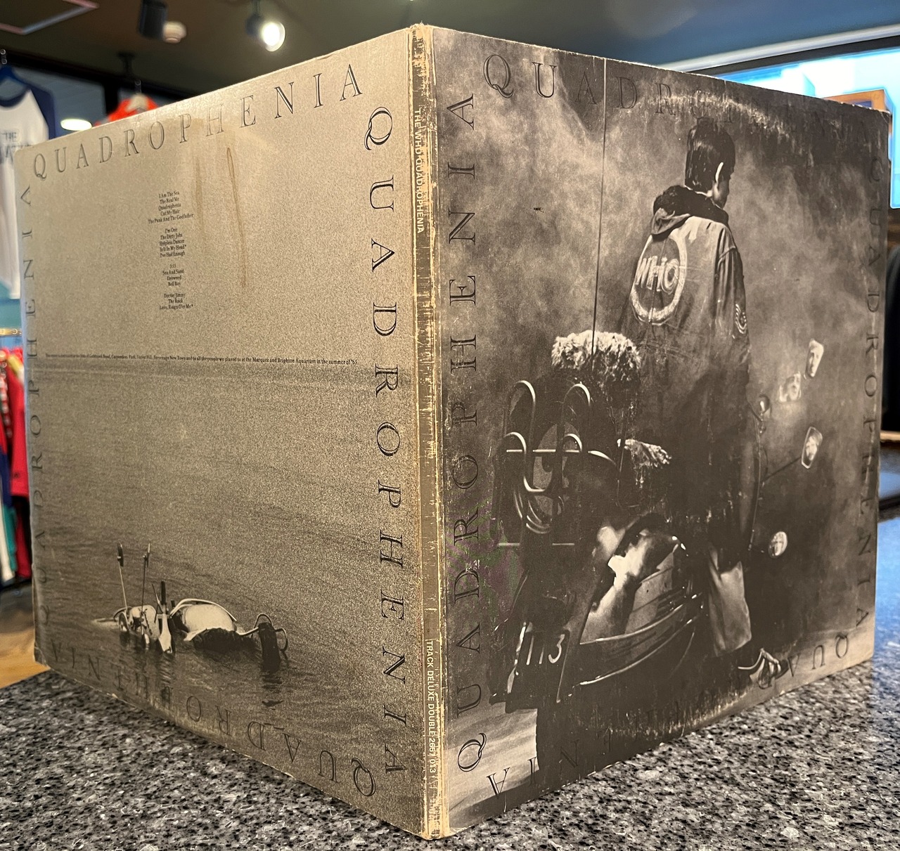 ご存知フーの傑作2枚組コンセプトアルバム、『四重人格』。綴じ込みブックレット付、UK盤オリジナル。ノンフラットレーベル。マトA//2, B▽1, A//2, B▽2。ブックレットは本体から外れています。ジャケは薄くリングウエア、背スレあります。