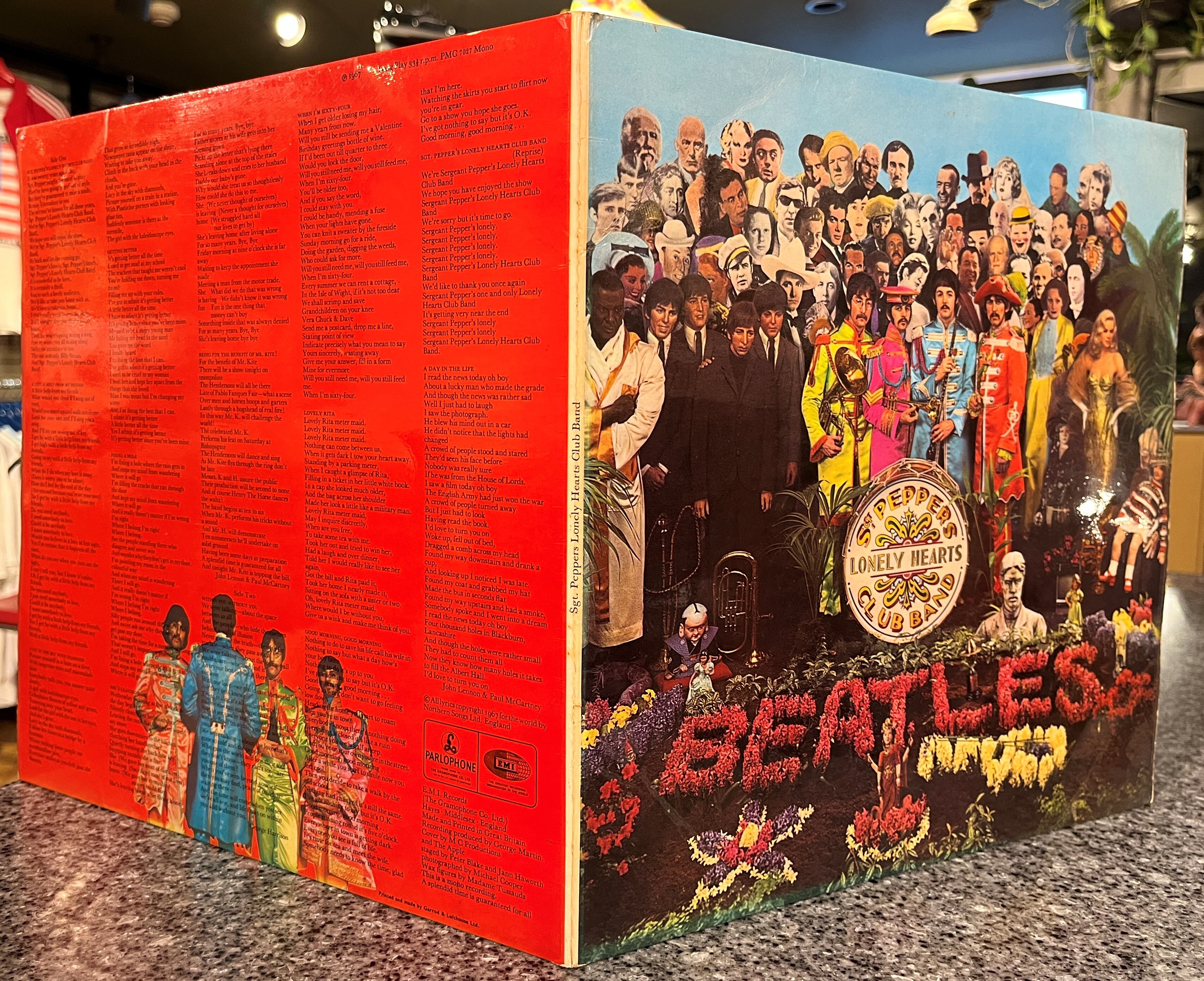 UKオリジナル、モノラル、イエロー・パーラフォン、見開きコーティング・ジャケット、マト1/1、激レア、A Day In A Life 表記なし。Foolishインサート付。赤白インナーなし(このバージョンにはなし)。盤はB面中盤に長めのキズあり、3分程断続的にプチノイズ出ます。