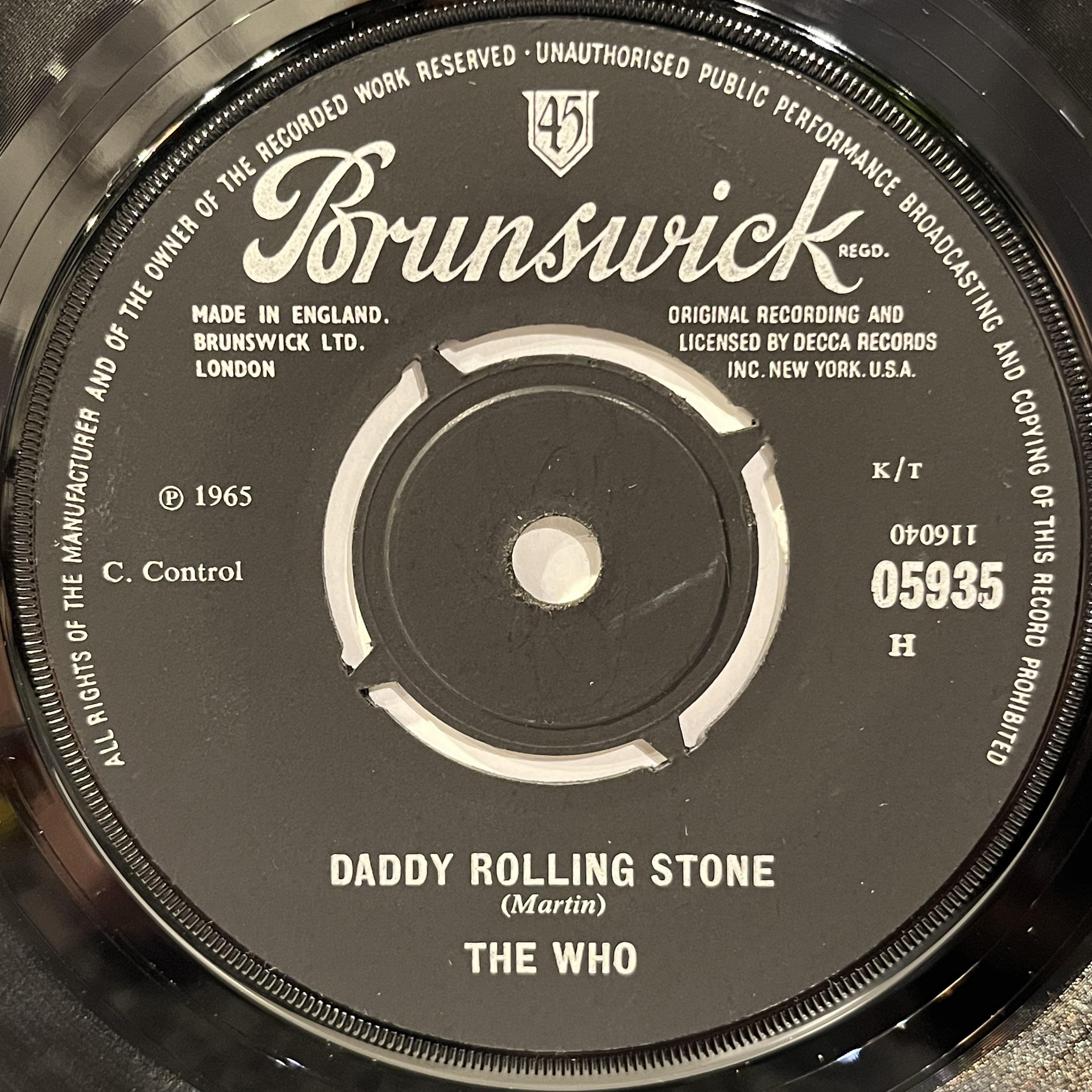 アルバム未収。めちゃめちゃかっこいいこのリフを爆音シングルでぜひ。UKオリジナル、モノラル、プッシュ・アウト、マト2/2。CS付。CS少し破れ。